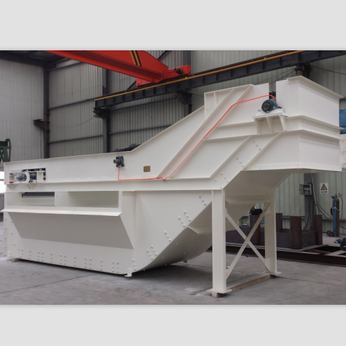 重介质浅槽分选机是根据阿基米德原理,将被分选原煤在一定密度的悬浮液中按密度差异进行分层和分离的设备,其工艺过程是:将原煤注入充满重介质悬浮液的槽体中进行分选。悬浮液的密度自动调节,密度小于悬浮液的物料浮至液面,在水平流的作用下,从侧方的溢流排料口排出;密度大于悬浮液的物料(矸石和高灰分煤)沉至槽底,由刮板从头部排料口排出,从而得到两种不同密度的产品。